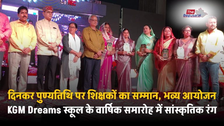 Begusarai news :बेगूसराय में राष्ट्रकवि रामधारी सिंह दिनकर की पुण्यतिथि के अवसर पर ‘राष्ट्रकवि दिनकर शिक्षक सम्मान’ समारोह तथा KGM Dreams विद्यालय का वार्षिक उत्सव बड़े ही हर्षोल्लास के साथ आयोजित किया गया। इस कार्यक्रम में शिक्षा, साहित्य और संस्कृति के क्षेत्र से जुड़े गणमान्य लोगों की उपस्थिति रही। समारोह की शुरुआत राष्ट्रकवि दिनकर के चित्र पर माल्यार्पण एवं श्रद्धांजलि अर्पित कर की गई, जिसके बाद उनके साहित्यिक योगदान और राष्ट्र निर्माण में उनकी भूमिका को याद किया गया।