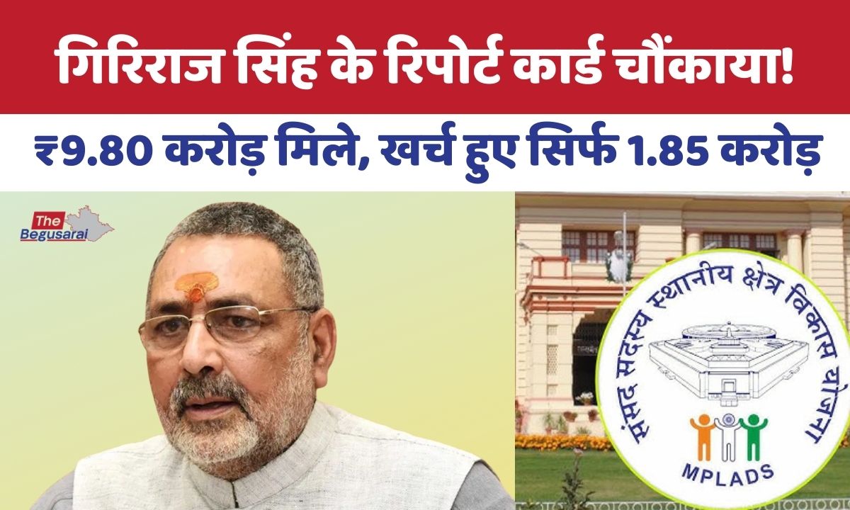 Giriraj Singh : 18वीं लोकसभा के गठन के बाद दूसरे वित्तीय वर्ष का समय पूरा होने को है, लेकिन बेगूसराय संसदीय क्षेत्र से सांसद और केंद्रीय मंत्री गिरिराज सिंह का रिपोर्ट कार्ड क्षेत्र की जनता को निराश करने वाला है। सरकारी आंकड़ों के मुताबिक, विकास के लिए आवंटित करोड़ों रुपये का फंड इस्तेमाल के अभाव में पड़ा हुआ है, जिससे स्थानीय विकास कार्यों की गति सुस्त पड़ गई है।