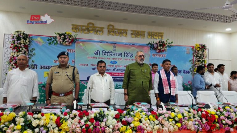 बेगूसराय में शुक्रवार को समाहरणालय स्थित कारगिल विजय सभा भवन में सड़क सुरक्षा समिति की बैठक आयोजित की गई। बैठक की अध्यक्षता सांसद-सह-केंद्रीय मंत्री गिरिराज सिंह ने की।