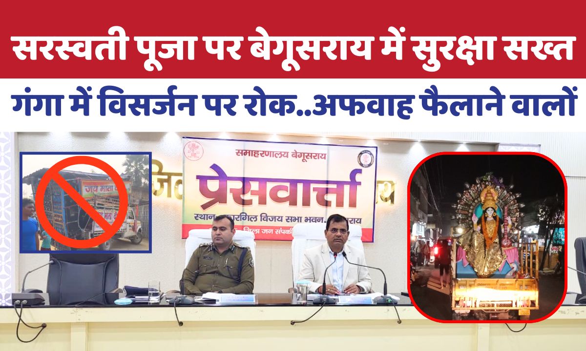 Begusarai News : आगामी 23 जनवरी को आयोजित होने वाले सरस्वती पूजा (बसंत पंचमी) के अवसर पर जिले में शांति, सौहार्द और विधि-व्यवस्था बनाए रखने के लिए जिला प्रशासन ने कमर कस ली है। डीएम श्रीकांत शास्त्री एवं पुलिस अधीक्षक मनीष द्वारा एक संयुक्त आदेश जारी किया गया है, जिसके तहत जिले के सभी संवेदनशील और अति संवेदनशील इलाकों में भारी संख्या में दंडाधिकारियों और पुलिस बल की प्रतिनियुक्ति की गई है।