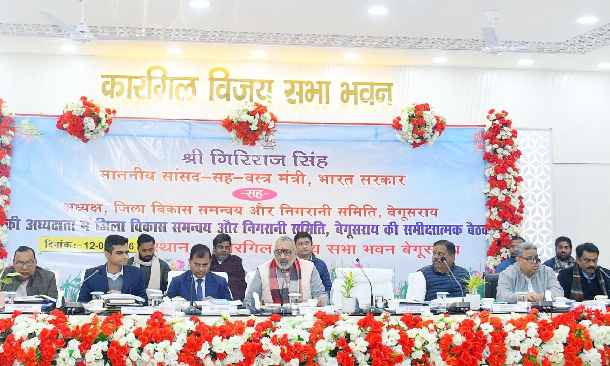 Begusarai News : आज जिले के समाहरणालय स्थित कारगिल विजय सभा भवन में केंद्रीय मंत्री गिरिराज सिंह की अध्यक्षता में जिला विकास समन्वय एवं निगरानी समिति (दिशा) की बैठक आयोजित की गई। बैठक में केंद्र एवं राज्य सरकार द्वारा संचालित विभिन्न जन-कल्याणकारी एवं विकास योजनाओं की प्रगति की विस्तार से समीक्षा की गई।