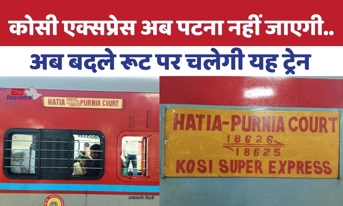 Indian Railway : सीमांचल, खगड़िया और बेगूसराय के यात्रियों को राजधानी पटना तक पहुँचाने वाली सबसे भरोसेमंद कोसी एक्सप्रेस अब पटना जंक्शन नहीं जाएगी। पूर्णिया कोर्ट से हटिया (रांची) जाने वाली 18625/18626 कोसी एक्सप्रेस अगले डेढ़ महीने तक अपने निर्धारित मार्ग पटना रूट होकर नहीं चलेगी। रेलवे द्वारा किए गए तकनीकी बदलावों के कारण यह ट्रेन 5 फरवरी से 21 मार्च तक नए रूट से परिचालित की जाएगी।