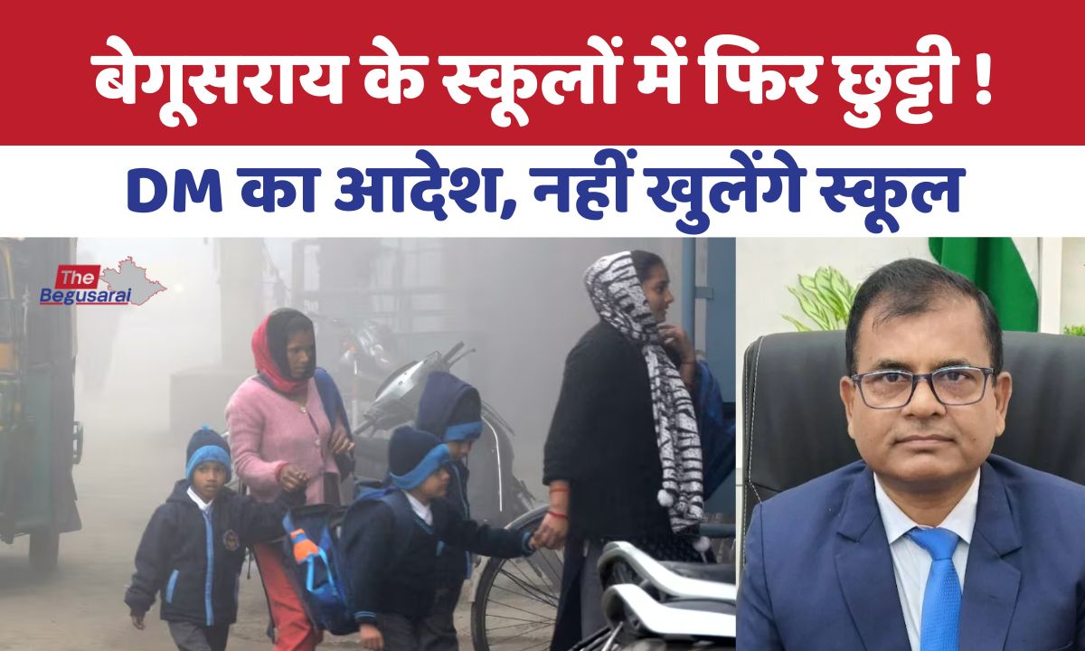 Begusarai School Closed : बेगूसराय में लगातार बढ़ती ठंड और गिरते तापमान को देखते हुए DM श्रीकांत शास्त्री ने बच्चों के स्वास्थ्य और सुरक्षा के मद्देनज़र महत्वपूर्ण आदेश जारी किया है। ठंड के कारण बच्चों पर पड़ने वाले प्रतिकूल प्रभाव की आशंका को ध्यान में रखते हुए यह निर्णय भारतीय नागरिक सुरक्षा संहिता, 2023 की धारा-163 के तहत लिया गया है।