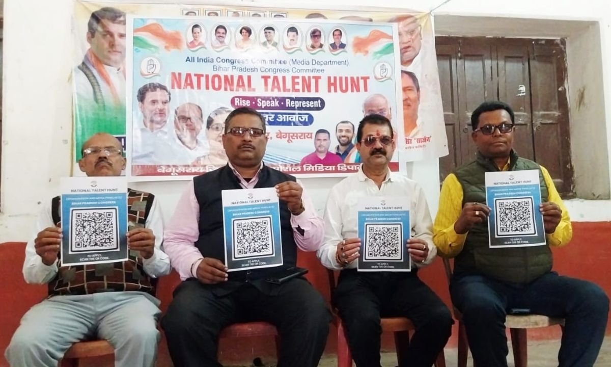 Begusarai News : कांग्रेस पार्टी ने सांगठनिक मजबूती और जनता के मुद्दों को मुखरता से उठाने के लिए एक नई पहल ‘टैलेंट हंट – बिहार की आवाज़’ की शुरुआत की है। शनिवार को बेगूसराय स्थित कांग्रेस भवन में आयोजित एक संवाददाता सम्मेलन के दौरान जिला कांग्रेस के विभिन्न विभागों के पदाधिकारियों ने इस महत्वाकांक्षी कार्यक्रम का औपचारिक विवरण साझा किया।